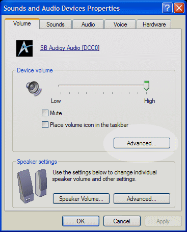 Close the control window and click on <OK> on the "Sounds and Audio Devices" window.